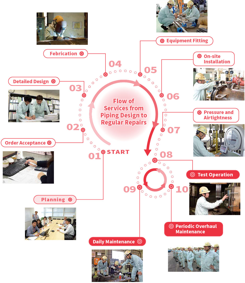 - Provides engineering services which comprehensively integrate everything from design and installation to on-stream maintenance and regular repairs