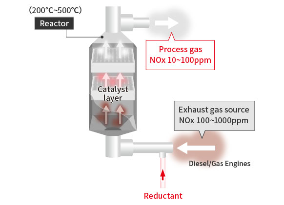 In order to remove NOx (nitrogen oxide) found in ship exhaust, reducers are used to break it down into harmless nitrogen and water by catalytic action.
