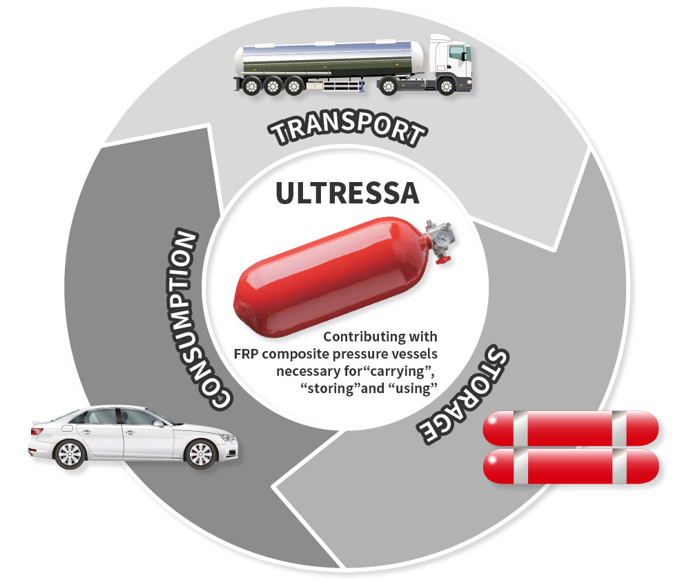 ■Contributing with FRP composite pressure vessels required in “transport,” “storage,” and “use” applications